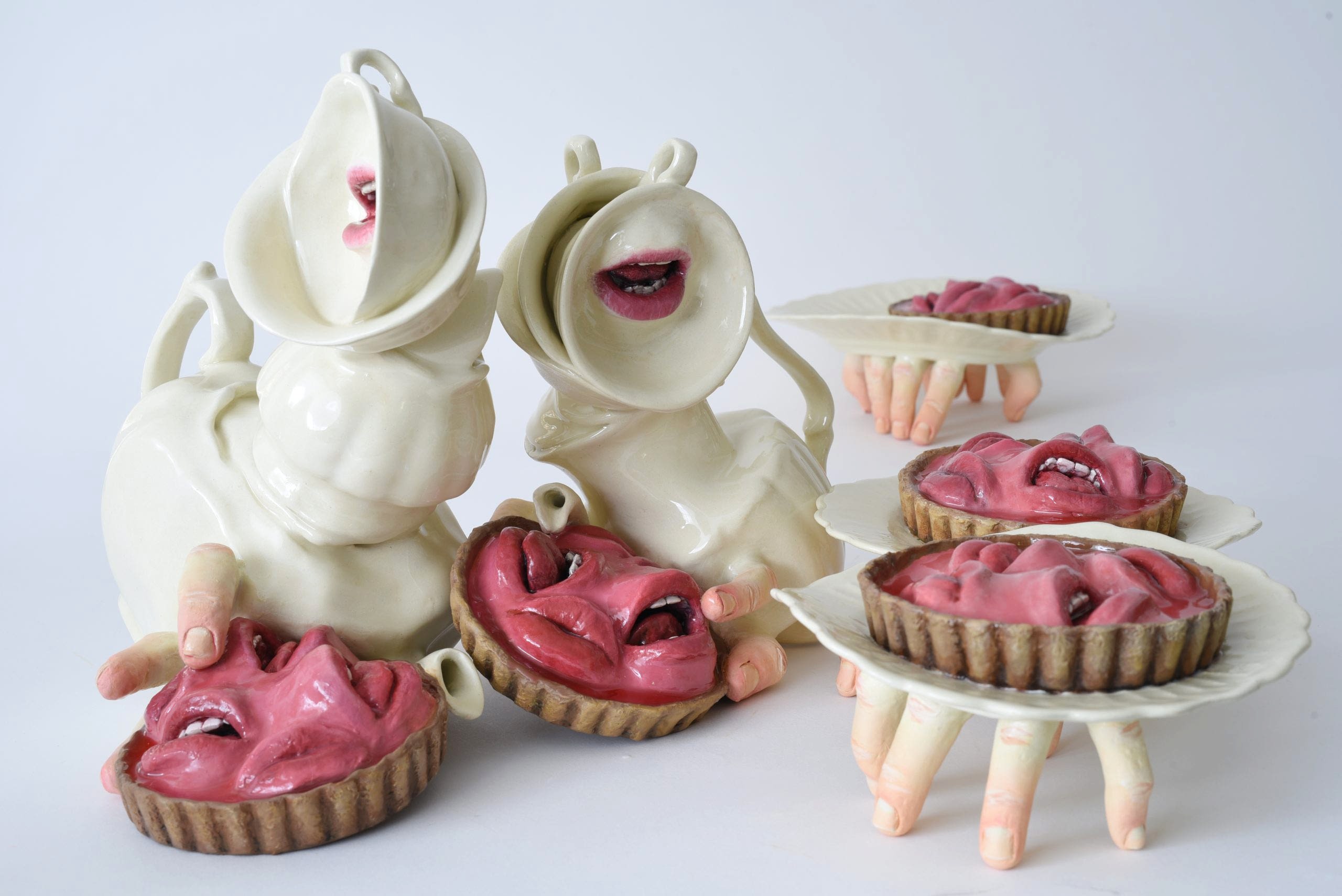 İşlerin sergilendiği masa, üzerinde baştan çıkarıcı elementlerin bulunduğu küçük bir dünya. Sanatçının çay takımında kullandığı parçaları bir metafordur, her bir parçası kırılgan varlıkların oluşturduğu bu küçük toplumda görevini yerine getirir.